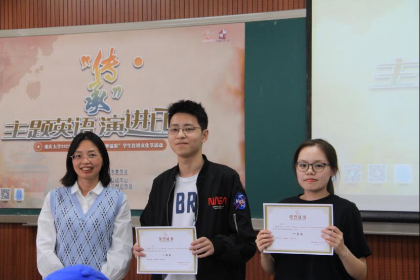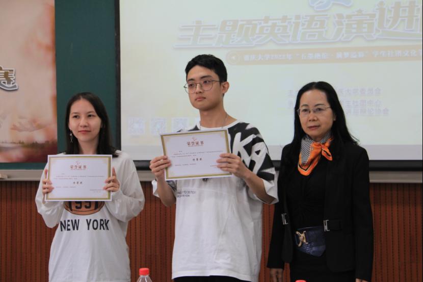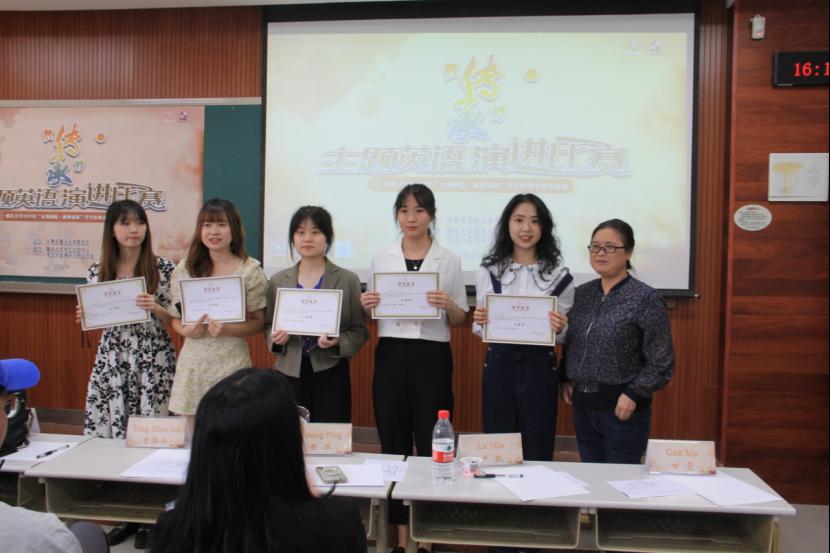 2021级英语专业本科生唐可一、博雅学院2021级中国语言文学专业本科生桑可、经济与工商管理学院2021级金融专业本科生鄂红豆、本科生院2021级电气信息类张城玮和艺术学院2020级艺术油画专业本科生甄瑱共6位同学获三等奖。随后,获奖选手们纷纷上台领奖并与诸位评委合影留念。