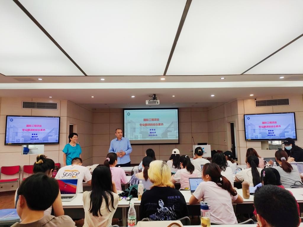 郭敬谊老师强调,国际工程中的专职翻译需要较高的综合素质,这包括强健的身体素质、强大的心理素质、较强的服务意识等,而最重要的是较强的学习能力和积极的学习态度。同学们认识到,要做好专职翻译,不仅要在语言功底上努力提高,在身心素质和专业意识上也不能松懈。