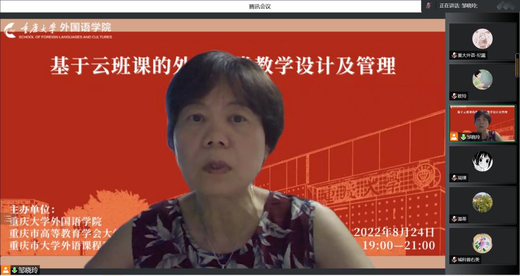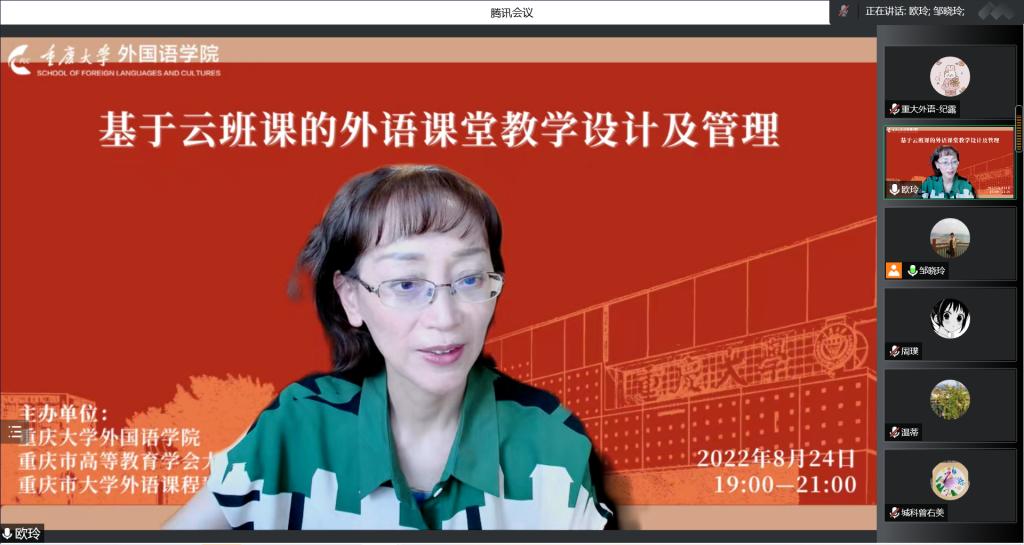 协同重庆市高等教育学会大学外语教学研究会以及重庆市大学外语课程群虚拟教研室于2022年8月24日19:00至21:00举行了“基于云班课的外语课堂教学设计及管理”线上直播专题讲座。本次讲座由跳蛋视频