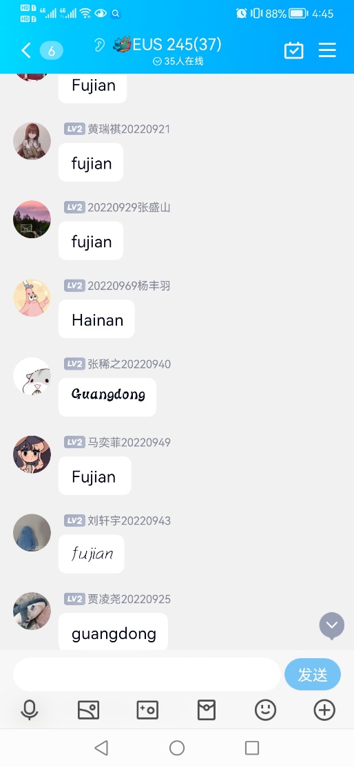 宣传片,帮助新同学直观了解学校的校情校貌,在云端初步熟悉学校整体情况。课程开始,老师们设计了各类线上破冰小活动。如杨郁梅老师请大家根据同学在头脑风暴活动中的描述,猜猜他/她从哪里来。五湖四海都是中华儿女,大家在破冰之后快速融入学习。黄莉荔老师运用语料库资源设计了词汇练习,促使同学们有意识利用技术积累词汇。