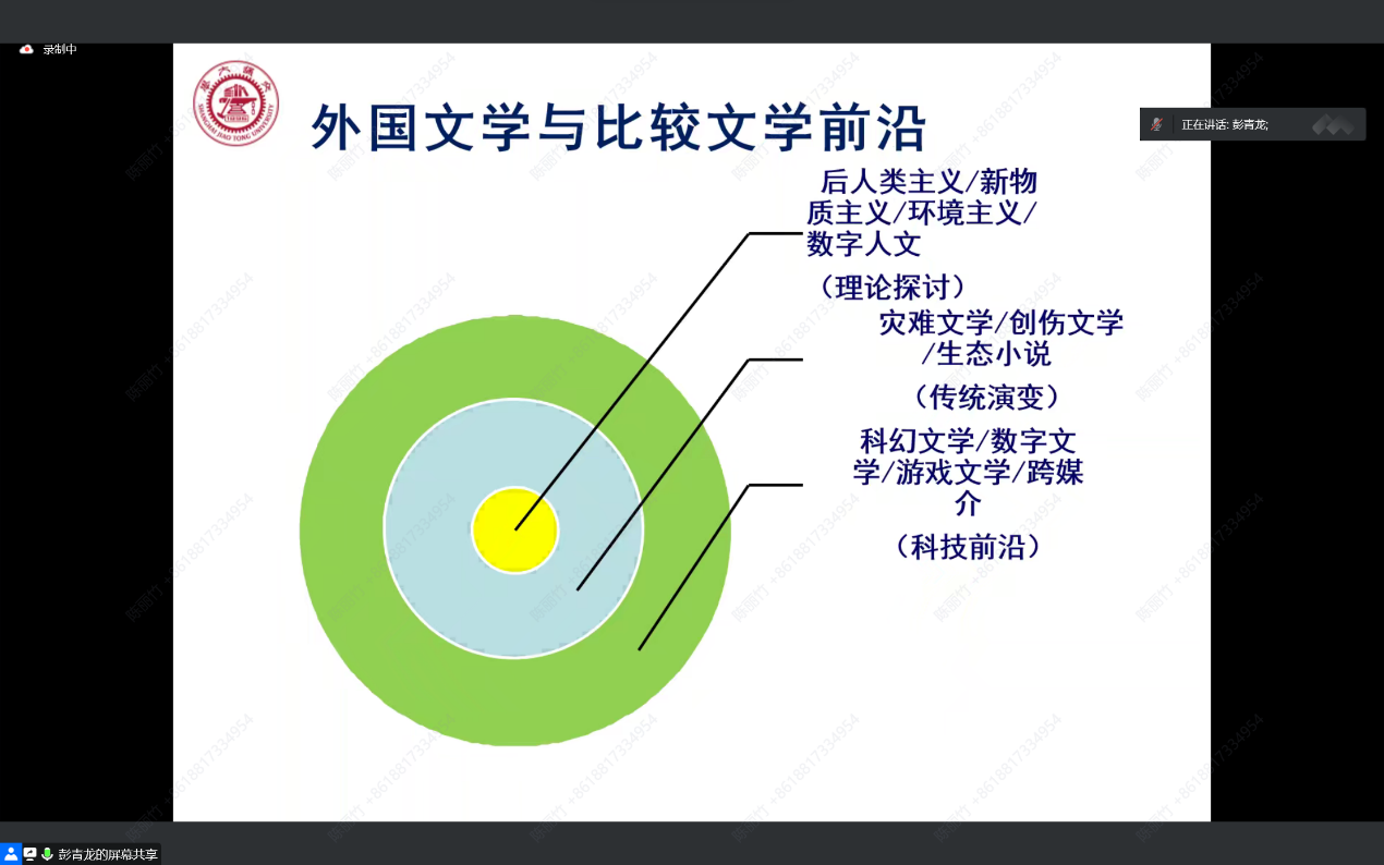 邀请彭青龙教授,进行了题为“数字时代外语学科前沿与学术发表”的讲座。彭教授指出,数字时代的外语学科面临着转型发展的机遇的挑战,科学技术对于科学研究的内容和方式都产生了重要影响。在这一局面下,如何把握数字时代的学科前沿并高质量发表是摆在我们面前的重要问题,本讲座从前沿问题出发,讲述科学研究和学术发表的路径与方法。本场讲座由跳蛋视频