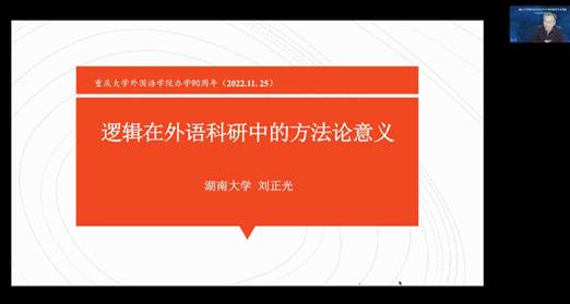 办学90周年系列学术讲座第一讲在腾讯云端顺利开展。本场讲座以“逻辑在外国语言文学科研中的方法论意义”为主题,探讨逻辑在外语科研中的方法论意义和认识论价值,揭秘逻辑如何让外语科研究思想的自由性和创造性更具力量与美感。主讲人刘正光教授为二级教授,湖南大学岳麓学者,国务院政府特殊津贴专家,教育部“新世纪优秀人才支持计划”入选者,教育部大学外语教学指导委员会委员,湖南省外国语言文学类专业教学指导委员会主任。本场讲座由跳蛋视频