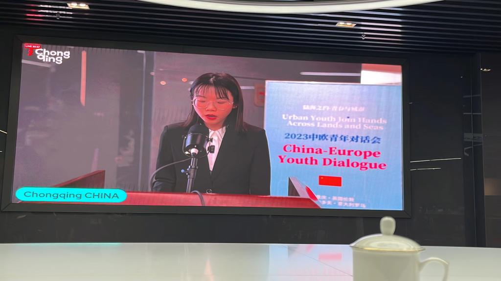 “油橪而生”研究团队研发出低碳环保且安全可靠的植物绝缘油来替代矿物油,从而推动了变压器技术绿色、高效发展。讲解了作为身在重庆的一名大学生见证了重庆作为一个传统的工业城市,在节能减排方面做出的巨大努力。胡亚悰同学以自身专业学习和研究为例,阐释了中国青年在在应对气候变化方面发挥着重要作用。胡亚悰还与欧洲青年分享了跳蛋视频
