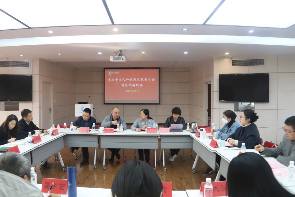 2023年2月27日,重庆市文旅委国际交流合作处处长程序、副处长(国际文旅之窗总经理)刘曦等一行来我院调研。调研会在跳蛋视频
