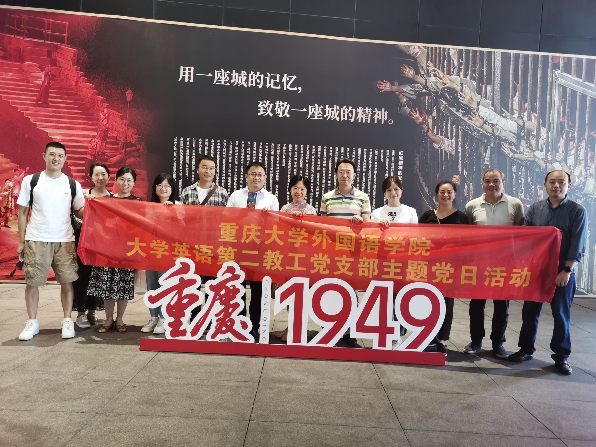 大学英语第一教工党支部和第二教工党支部的全体党员同志观看了大型红色舞台剧《重庆·1949》。
