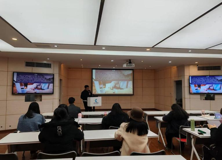 副院长王江教授主持,英语系系主任毛凌滢教授,科研基地的李静副教授,以及学院部分博士生和硕士生参加了这次讲座及交流。