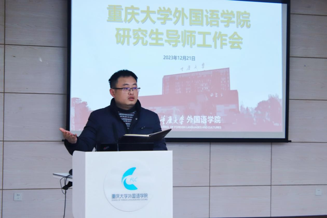 接着刘扬从我院学位授权点概况、2023年度研究生培养主要环节情况、2023届毕业生去向等方面详细介绍了本年度学院研究生教育工作的基本情况,并对下一年度重要工作做出部署。他表示,未来学院将从几个方面提升研究生培养质量:一、完善培养环节,探索增设研究生必读书目考试环节;二、优化培养方案,凝练课程建设特色;三、构建各方向导师团队,促进学科集群建设;四、强化留学生管理,提升留学生教育质量。最后他强调,学位论文质量是学位点建设的生命线,导师应该加强对学生论文写作细节问题的关注,坚决避免出现问题论文,同时介绍了学院研究生教育指导委员会和研究生教育督导团队的职责功能,以及下一年度学位论文等工作的相关安排。