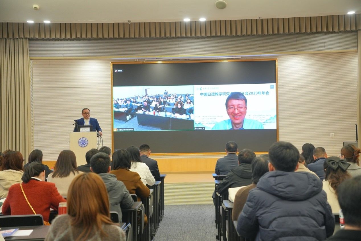 虎溪校区举行。重庆地区高校日语专业负责人、骨干教师,开展日语教学的高中领导及教师代表等五十余人参加了此次年会。本次会议旨在为重庆地区高校日语专业教师与高中日语教师提供教育、研究交流平台,共同探讨“新文科”背景下高校日语专业建设与高中日语教育的协同发展。开幕式由跳蛋视频