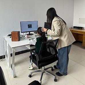 孩子们体验了心理语言学实验,包括考察工作记忆的行为实验、考察认知控制能力的脑电实验、快速命名及新词学习的眼动实验。