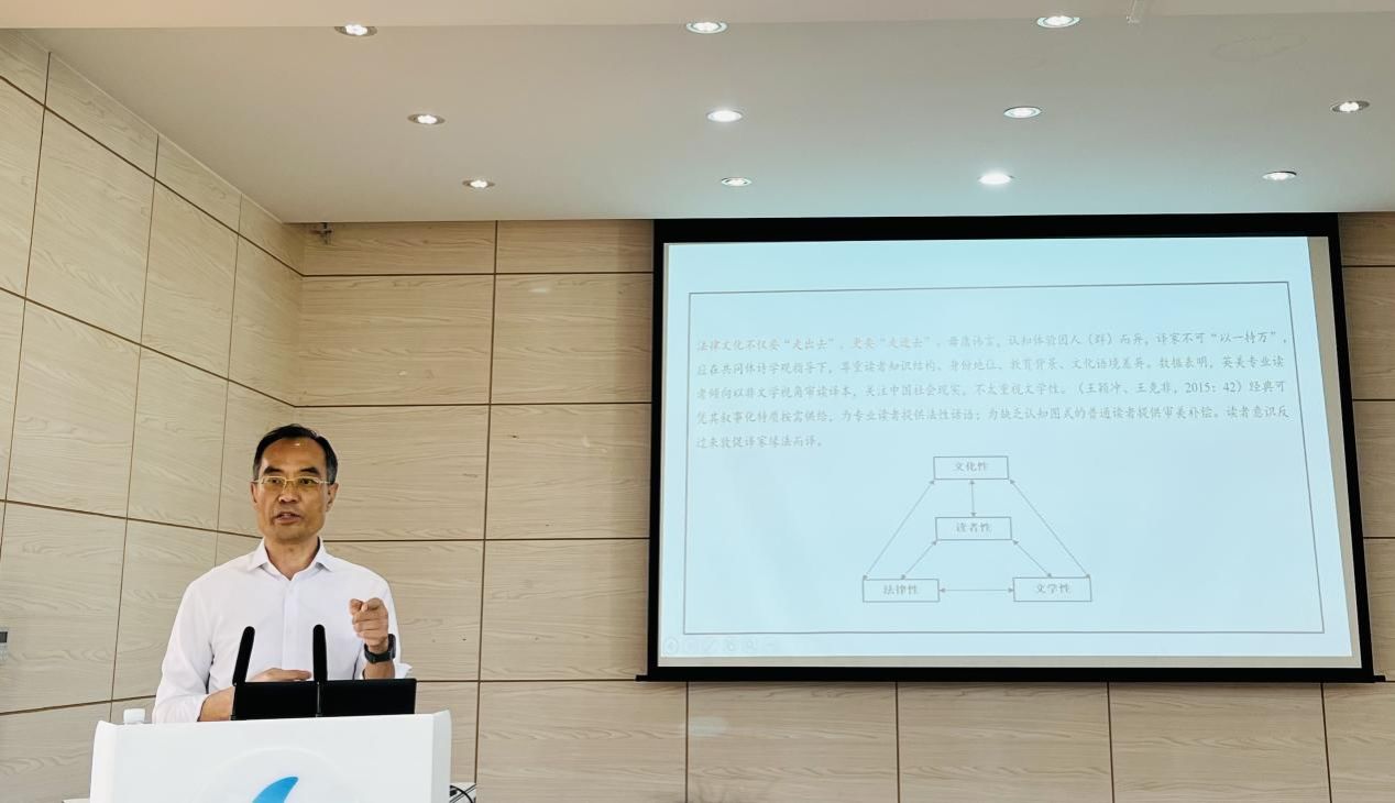 随后,他从外译动因、外译取向、理想模型、三重身份等多个方面,对法律文学经典外译之制进行了全面考察。他以《水浒传》的英译为例,生动展示了法律文学翻译中的“立格与传意”,以及法律文学译者的三重身份。他强调,翻译是一种选择和决策,因此传播的主体、受体、媒介与策略应当得到综合考量。