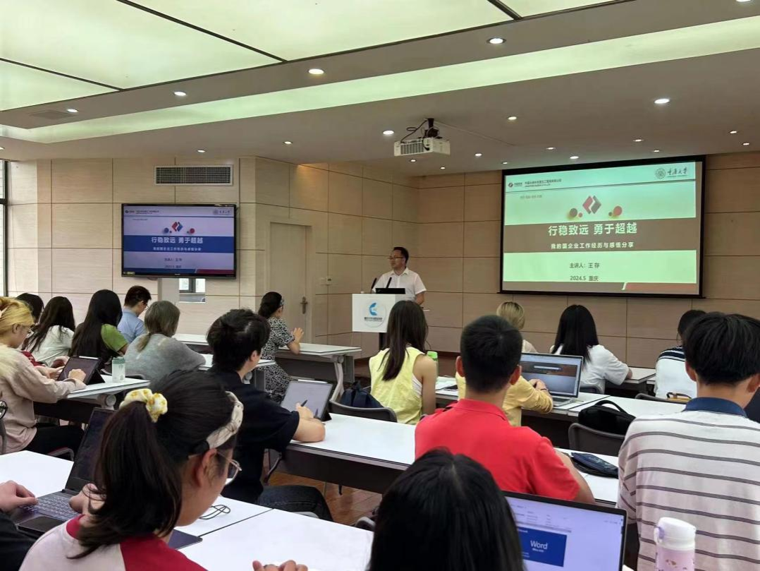 随后,王存经理分享了自己的个人经历。从考研、自修本科,到担任教师,他不断总结经验,追求职业上的进步。在人生伯乐的帮助下,他突破障碍,寻找新的机遇。此外,他还分享了自己在国际工程行业的工作经历,通过图片和文字,让现场师生感受到了异国他乡寻求职业发展的艰辛和独特魅力。