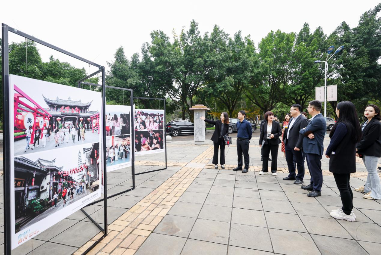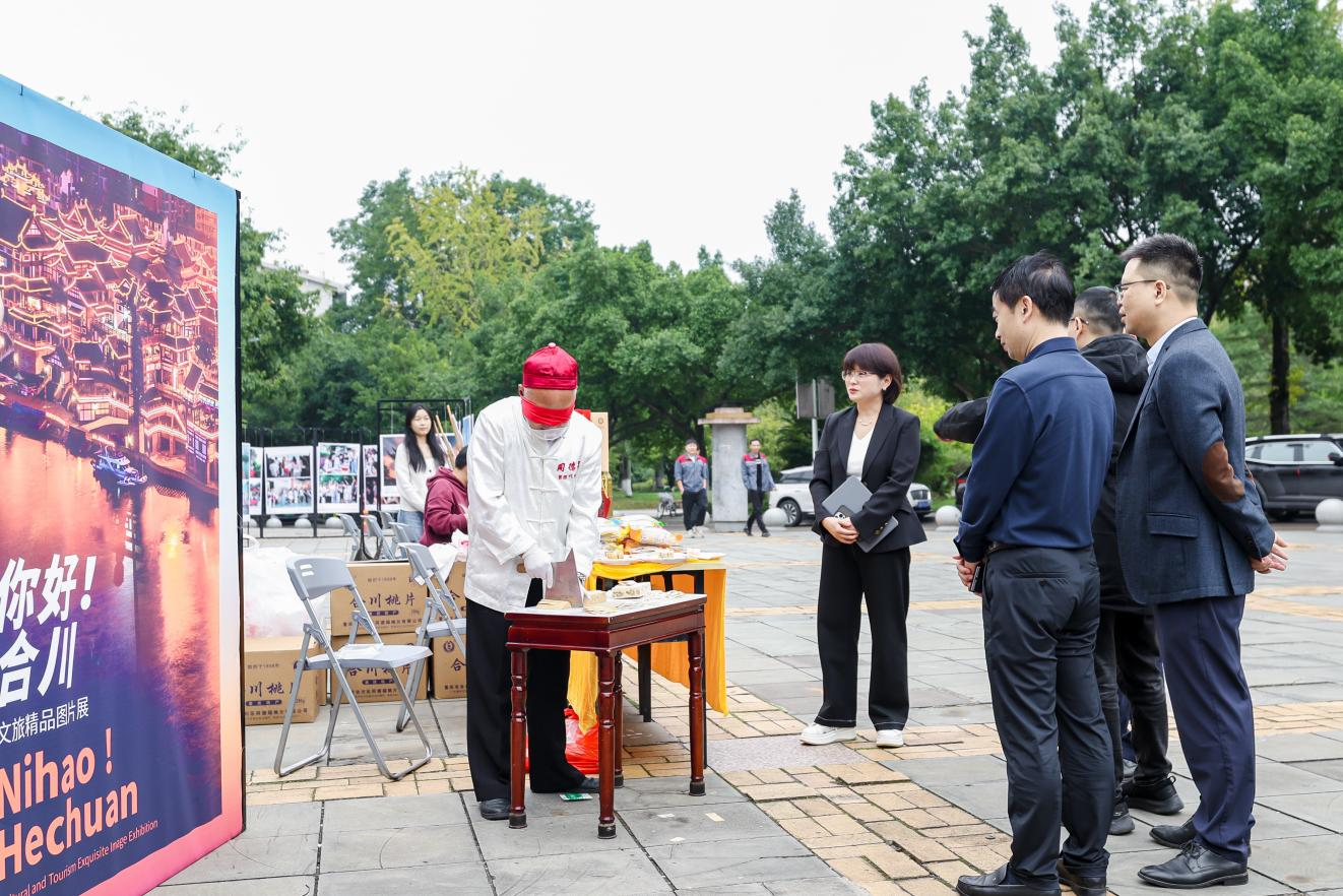 虎溪校区举行,吸引了广大师生驻足欣赏。会前,与会嘉宾共同参观了合川文旅精品图片展,了解了合川桃片、合川峡砚等合川非遗文化。