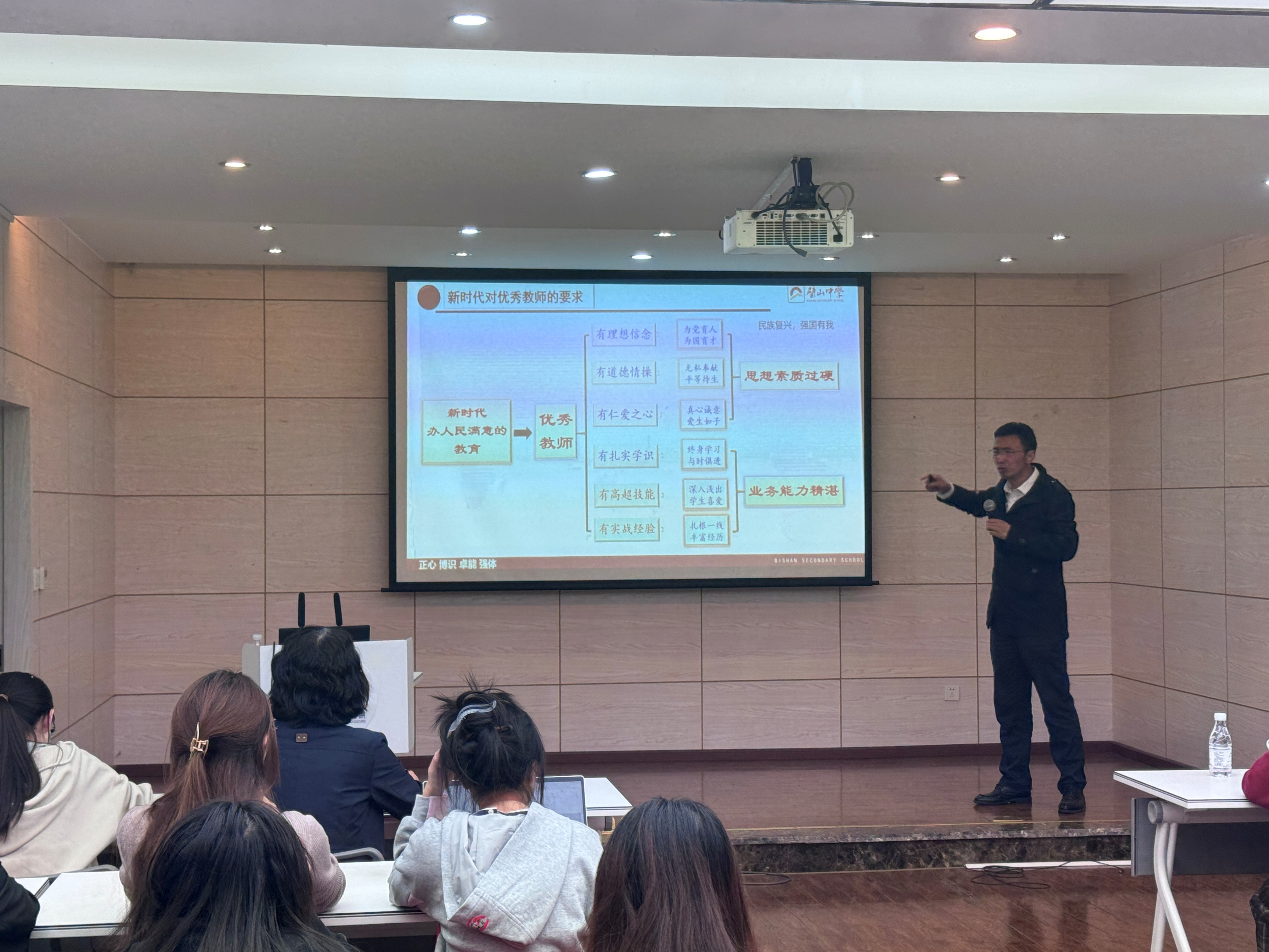 成校长具有丰富的教育经验和深厚的教学功底,他首先强调,教学相长是教师职业生涯可持续发展的秘诀。成校长在自己的职业生涯中不断提升业务水平,多次在教学技能大赛中获奖,为一线教师树立起了良好的榜样。成校长还提到,教师的品质是教育成功的关键,包括教师专业知识的深度、对学生的关爱以及对教育事业的热忱等等。成校长一系列生动的视频和图片,充分展示了一名优秀教师如何在日常工作中体现这些品质。