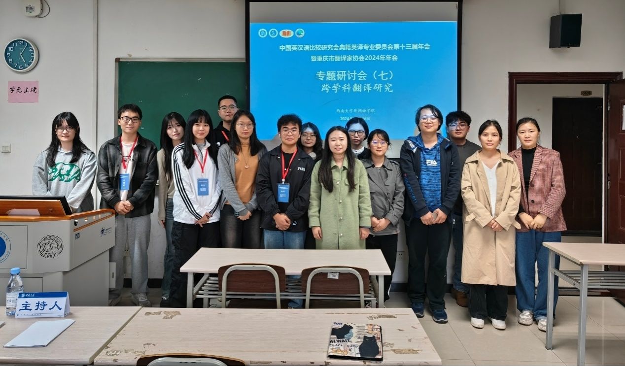 中国英汉语比较研究会典籍英译专业委员会第十三届年会暨重庆市翻译家协会2024年年会于2024年11月16日至17日在西南大学成功举办。在本次年会上,我院师生展现出对典籍英译研究的极高热情,共有李永毅、游振声、路斯琪、邹远鹏和陶叶茂等5位教师以及14位硕博士研究生参与,他们不仅在会议中分享研究,还深入参与研讨会的评点工作,展现了学院在典籍翻译领域的学术实力和研究活力。