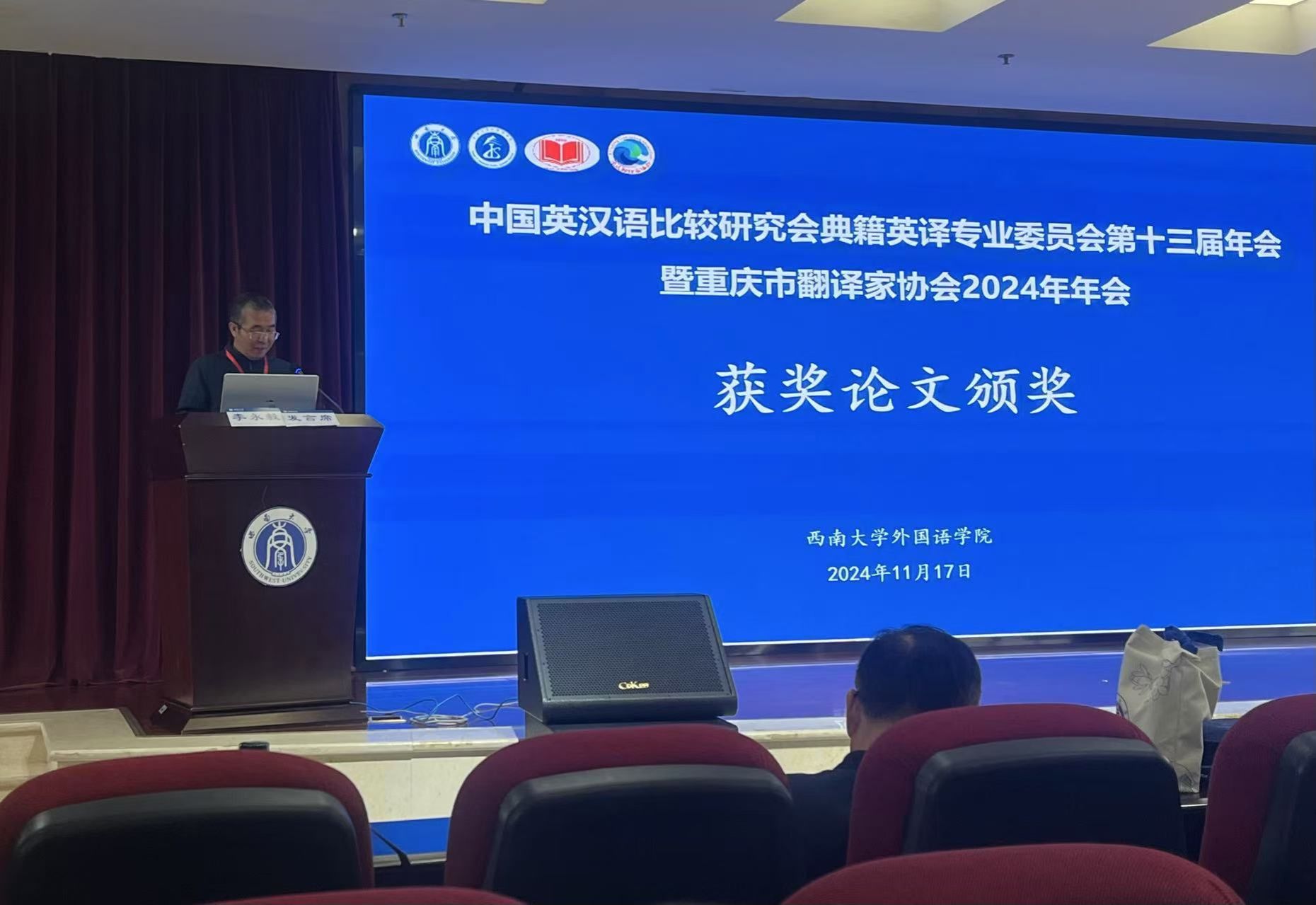 李永毅教授为大会获奖论文颁奖