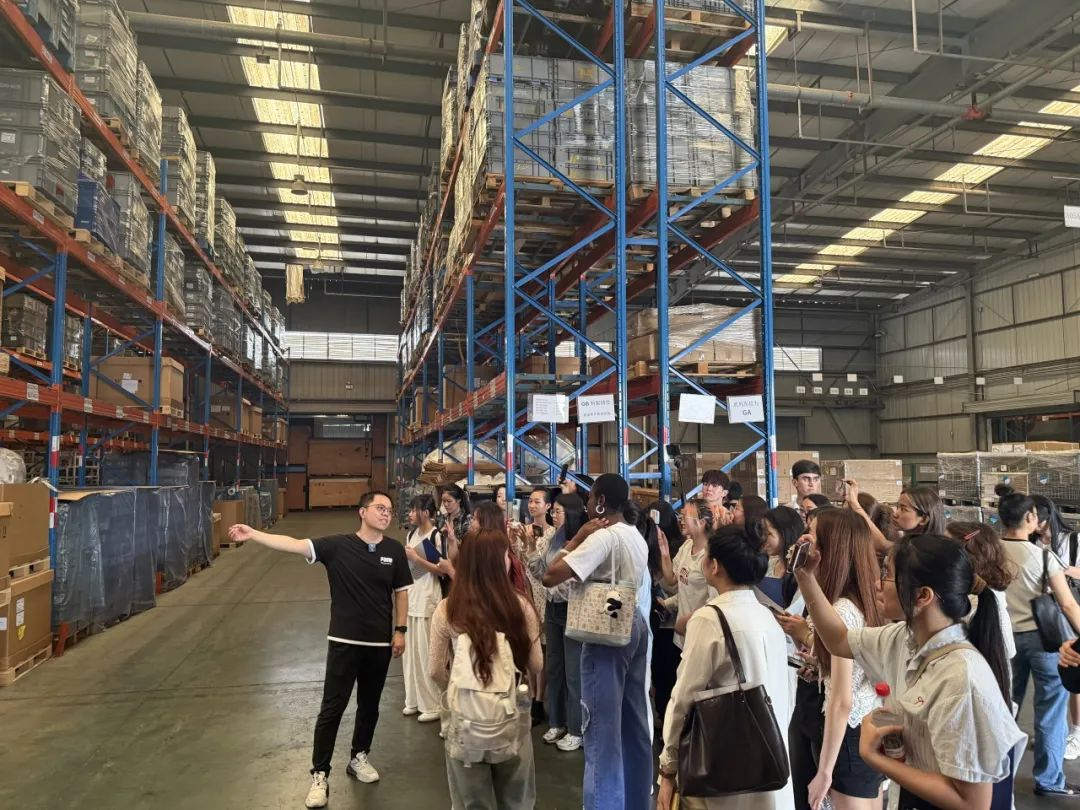 参观仓库环节将活动推向高潮。在何总等公司骨干的带领下,同学们近距离感受物流运作的流程。长安福特汽车零部件从全球各地运往重庆进行整车安装,最后又通过物流发往全球客户手中,这一案例让同学们直观认识到全球化背景下物流的重要影响。