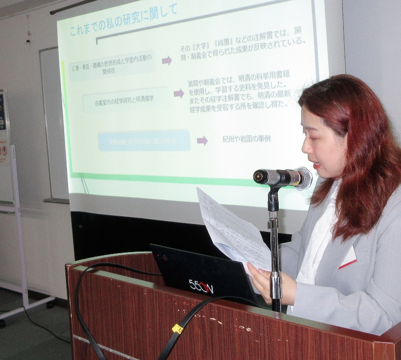 石运老师在会议上做了题为《转型时期的古义堂与伊藤兰嵎》的学术报告。报告中详细介绍了日本江户时期最具影响力的儒学塾——古义堂在18世纪中期的发展情况及其面临的危机,同时就活跃于此时期的古义堂第三代学者伊藤兰嵎的学说思想及其贡献进行了探讨。报告中还指出21世纪的古义堂研究应当更加重视对后期古义堂的活动及其社会关系网络的研究,以便于进一步理解古义堂及古义学对日本乃至东亚的儒学思想及社会文教系统发展之影响(上述系列研究受到了重庆市社会科学规划外语专项2023WYZX37资助)。