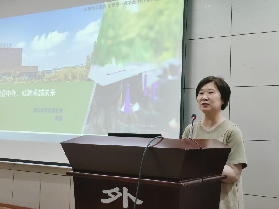 英语系主任盛荔首先强调,英语专业坚持“学研融合、学科交叉”等培养理念,注重学生研究能力的培养,要求学生利用现代科技辅助学习,实现知识、素质和能力三方面协调发展,并系统梳理了英语专业的课程体系,介绍了英语文学、翻译等核心课程。