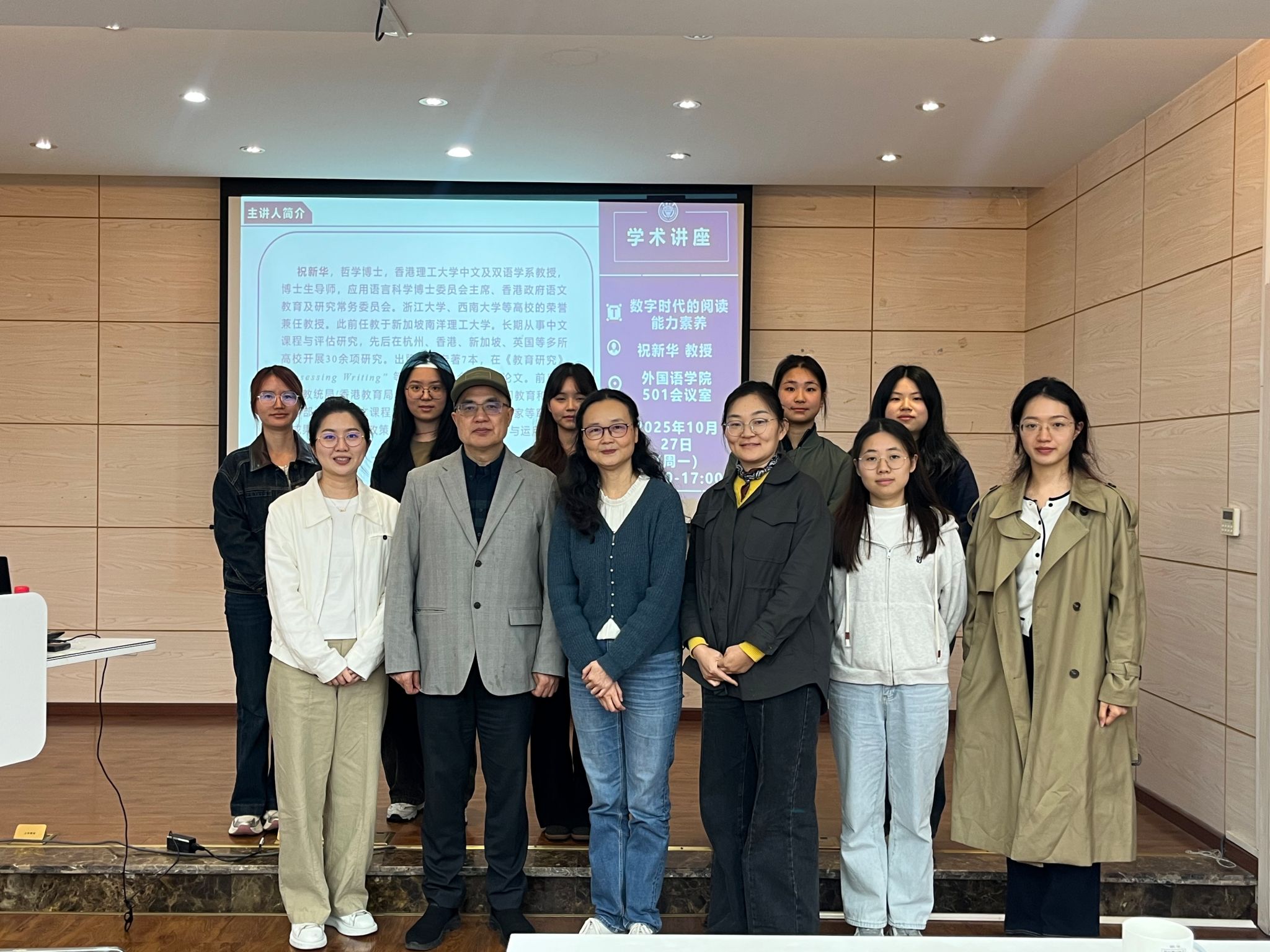 在互动环节,与会师生围绕框架的实际应用踊跃提问,祝教授一一给出细致解答。整场讲座内容丰富、见解深刻,为理解和应对数字时代的阅读教育挑战提供了重要启发,激发了师生的研究热情。
