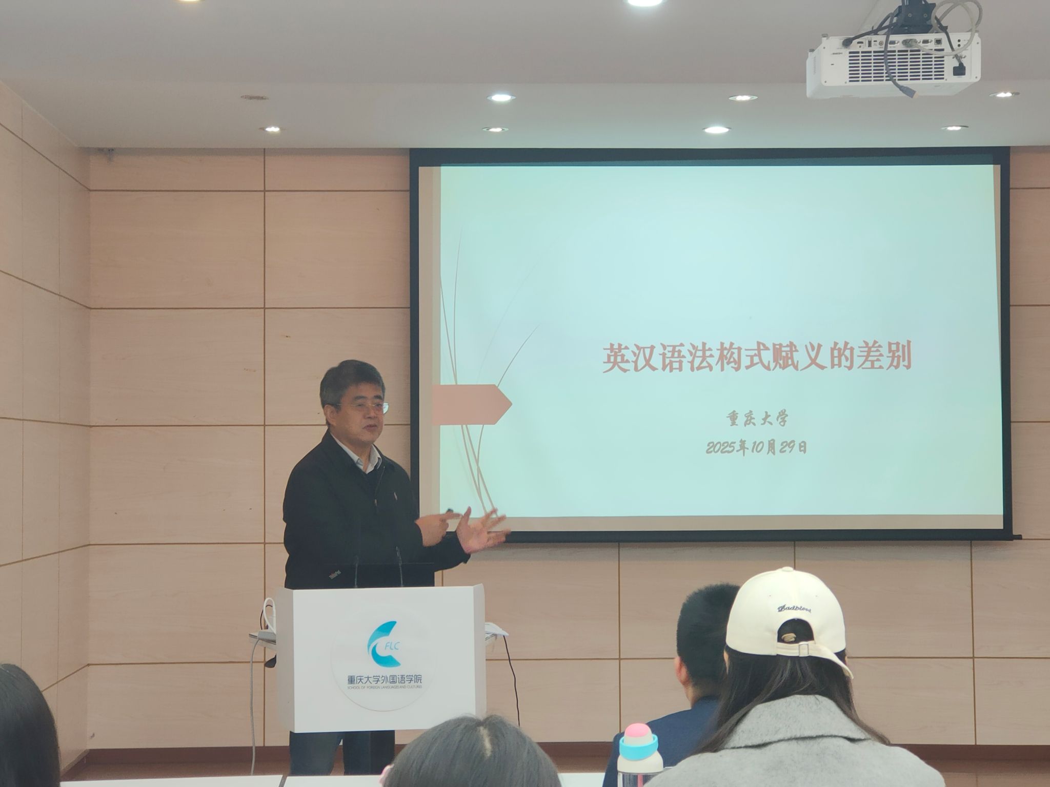 2025年10月29日下午,新加坡国立大学石毓智教授应邀莅临我院,在501会议室作了主题为“英汉语法构式赋义功能的差别”的讲座。讲座由跳蛋视频