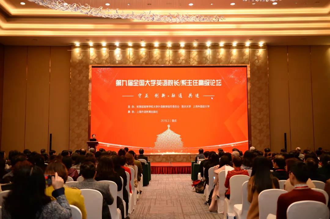和上海外国语大学联合主办,上海外语教育出版社承办的“第九届全国大学英语院长/系主任高级论坛”在大学城富力假日酒店盛大开幕。论坛以“守正 创新 · 融通 共进”为主题,探索新时代大学英语教学如何坚守本质,并在砥砺前行的征途中不断创新;探索如何培养具有中国情怀、国际视野的国际化外语人才;探讨高校创新人才培养以及智慧教育平台的运用等。