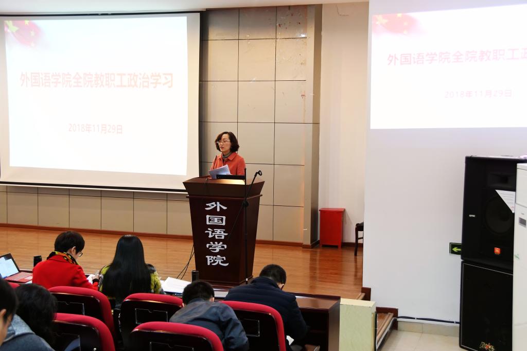 最后,欧玲书记做了总结发言,她谈到外语人可以发挥自己的优势,立足世界,讲好中国故事,推动民族文化走出去。全院教职工纷纷表示要认真学习和贯彻习近平总书记全国教育大会重要讲话精神、陈宝生同志在“双一流”建设现场推进会上的讲话精神,以课程改革为引领,以学生为中心,关注学生核心素养的培养,深化课程和教学改革,为学生提供更多元的课程和选择,建立更多元的评价标准和培养体系,让高质量、个性化、多样性学习需求得到更好的满足,切实提高人才培养质量,为学校“双一流”建设做贡献。