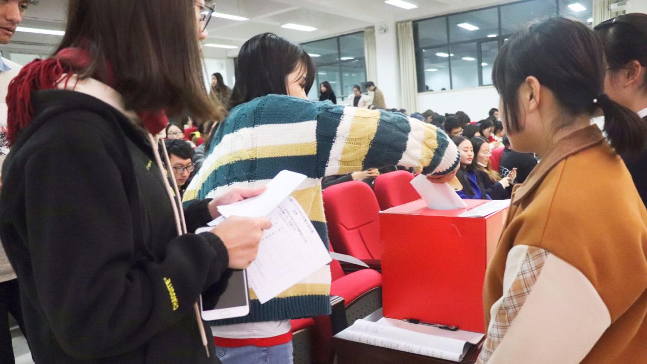 的每位学生代表都认真且负责地投下了自己庄严而神圣的一票。