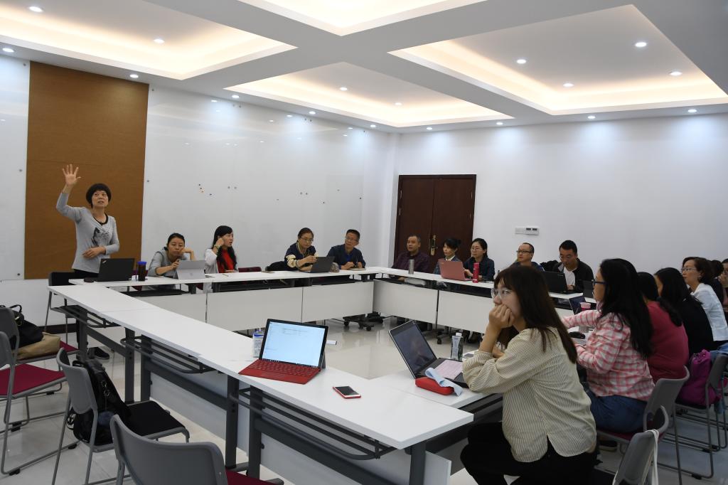 此次工作坊采用案例研讨的方式,几位老师分享了自己的研究现状,也提出了自己的困惑和问题,邹晓玲教授针对这些问题详细的从研究方法、研究工具、数据分析几个方面给与了指导,并提出了中肯的意见。同时余渭深教授提出,教学研究应当基于教学中遇到的问题,从兴趣出发,要勇于创新。蒋婷教授和其他参会的老师也针对分享老师的案例提出了中肯的意见。