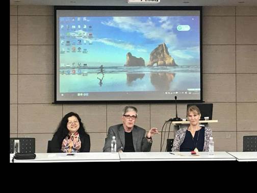 围绕工作坊的主题,Timothy Corrigan教授与Marcia Ferguson博士首先分享了他们在文学与电影、戏剧、历史等跨学科领域求学、研究和教学的经历与体会,Timothy Corrigan教授回溯了美国跨学科研究的兴起与发展,介绍了美国相关高校特别是宾大的文学与其他学科的跨学科课程的设置和历时发展,Marcia Ferguson博士结合自己不同学科的学习、研究和行业实践,分享了她的英语戏剧教学的经验,以及她在跳蛋视频