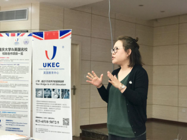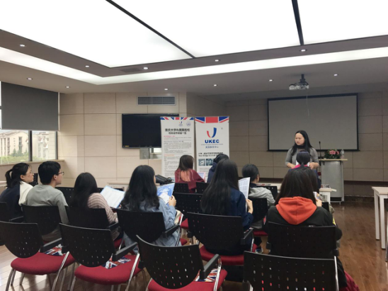 宣讲会现场,Patty WANG 就萨里大学的最新招生政策,录取要求,在英就业等信息做了全方位解读,特别针对我院同学感兴趣的翻译口译类专业做了详细的讲解。讲座现场,UKEC英国教育中心的老师们给有留学打算的同学们提供了全方位的留学咨询。