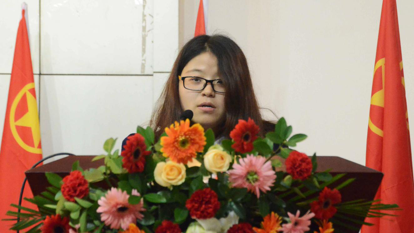 首先进行大会第一项,全体起立唱国歌。随后,团委副书记蒋方圆宣读院党委、校团委批复,传达了学院党委以及学院团委对于本次代表大会准许举办的精神。