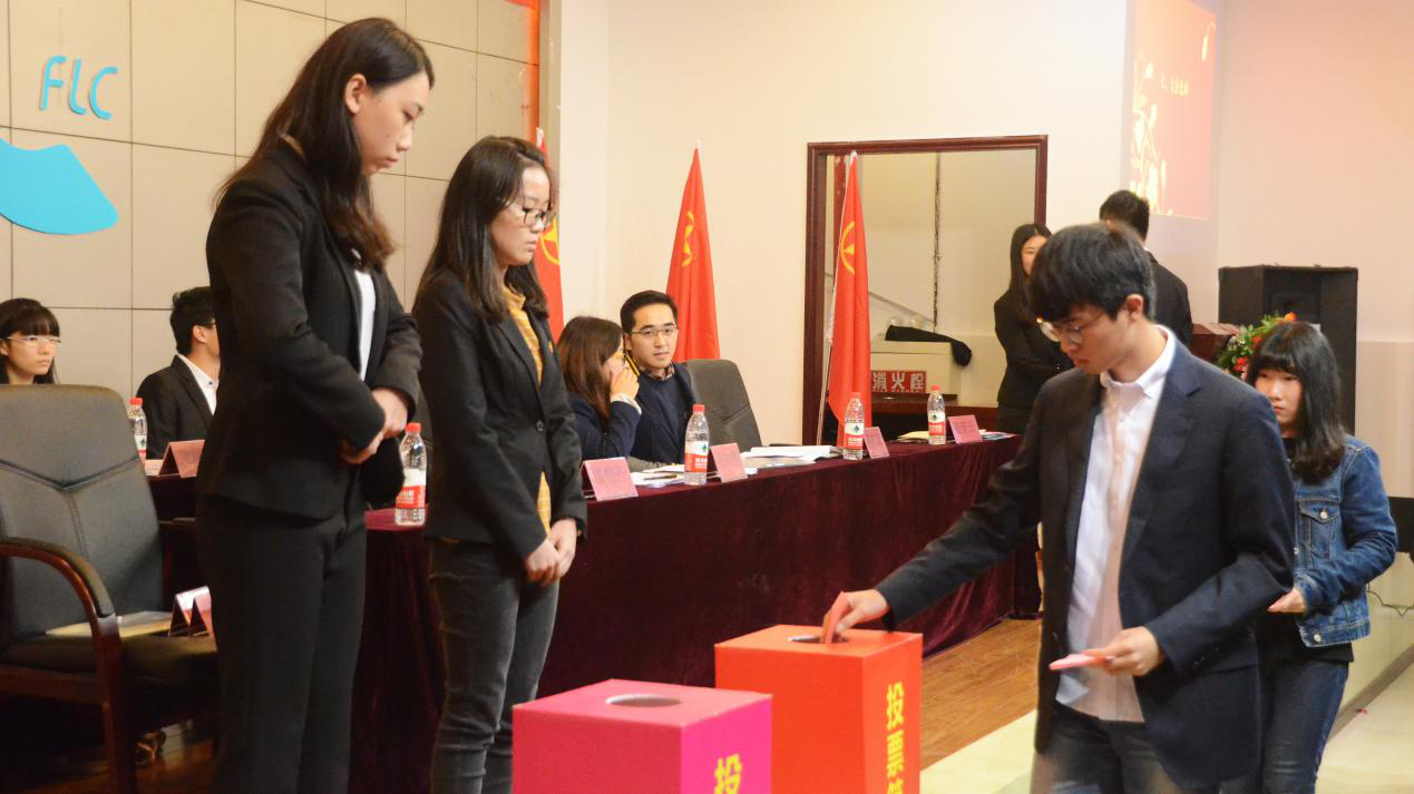 团委学生会主席谭慰齐宣读团组织换届选举方法,经在场代表举手表决后全体通过。共青团跳蛋视频
