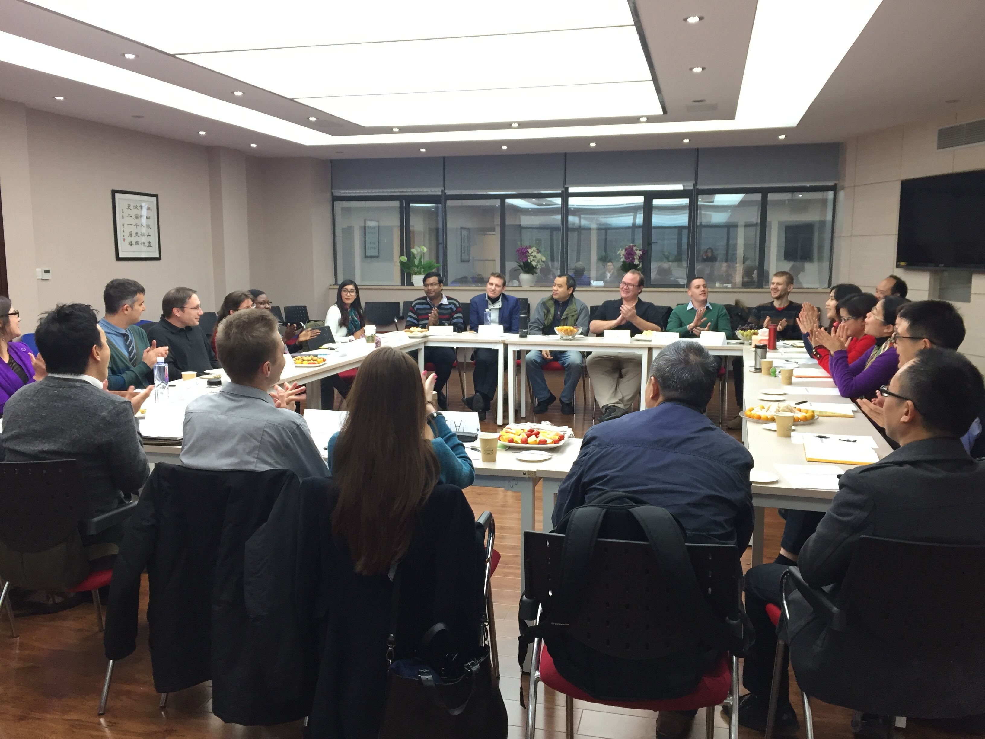 见面会结束后,新进外教Wonguk Cho 在501会议室为大家带来了今年第一场外教教学发展工作坊:On the Topic of Localizing TESOL in the Expanding Circle,引起了大家的热烈讨论。外教系列工作坊随后也将陆续开展,敬请大家关注。