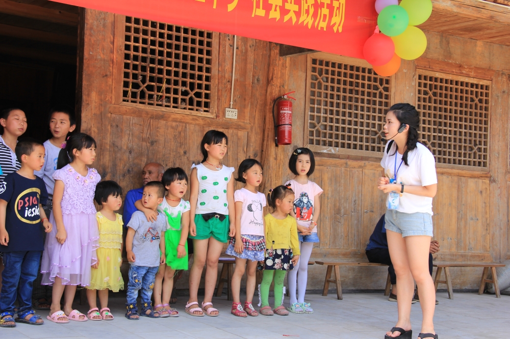 上午十点,根据会议安排,调研团的成员在黔江区重点文物保护单位,吕氏文化大院布置场地。活动主要由科技知识竞赛和文艺比赛组成,下午一点,“三下乡”活动正式开始,蒋方圆和蔡庆玲担任主持,团委书记张文静做了开幕讲话,对活动现场的乡亲表示了热烈的欢迎。张秀娟和蒋方圆带来了精彩的开场表演,演唱了土家族著名歌曲《山路十八弯》,博得阵阵喝彩,为活动拉开了序幕。