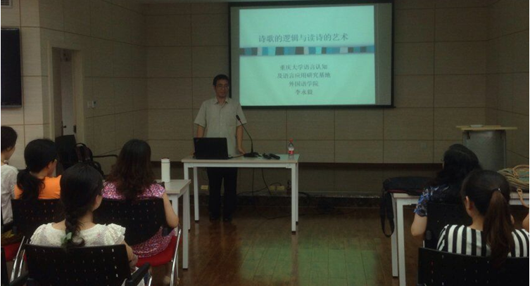 五楼学术报告厅举行。本次活动由基地研究员李永毅教授主讲,题目是《诗歌的逻辑与读诗的艺术》。基地主任辜向东教授和英语系主任毛凌滢教授共同主持了这次讲座,基地、英语系和大学外语的近二十位老师和几十名来自各院系的同学参加了沙龙。