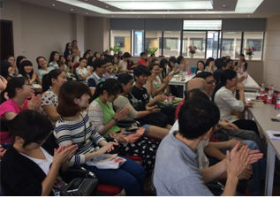 杨郁梅老师为在场师生做了精彩说课示范。陈娟老师首先进行的说课是说一个“教学单元”,她从学生、教材、教学法、学习方法、教学过程、教学反思六个方面入手,逻辑清晰、详略得当。许封老师展示的说课是说“一节课”:How to Stop the Pollution? 她的说课从分析教材、教学目标、教学重难点、教学设计、教学原则、教学法、学习方法、教学过程多个方面进行了展示,内容全面、设计新颖。杨郁梅老师的说课则是围绕一门英文提高课程: 《美国社会与文化入门》展开,通过学生是谁、需要提高哪些英文能力、依托内容如何进行选择、通过哪些活动提高英文能力,如何评估这五个问题娓娓道来,充满新意。