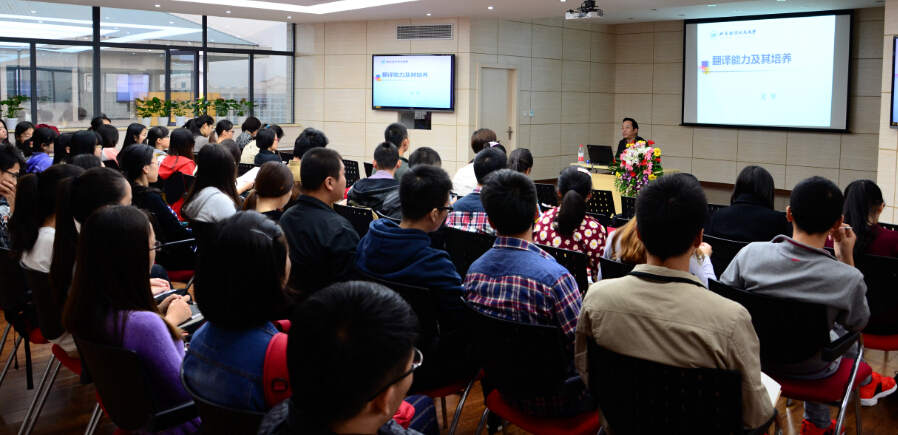 兼职教授文军教授为老师和同学们做了题为“翻译能力及其培养”的精彩讲座。讲座由跳蛋视频