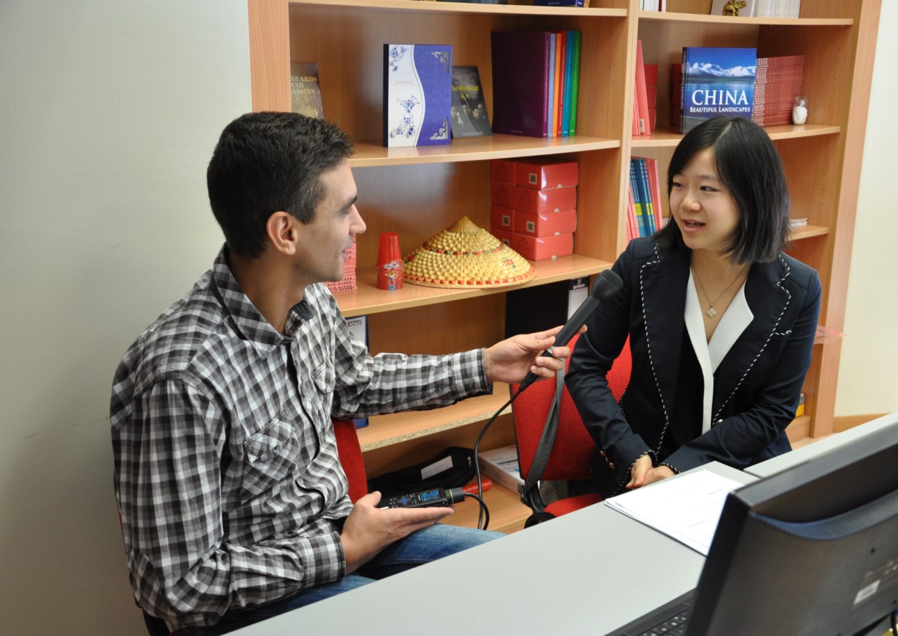 2013年10月8日,我院汉语国际教育专业研究生易树接受了塞尔维亚媒体Gbtimes Serbia电台的采访。该电台在当地具有一定影响力,为中国国际广播电台在塞的合作伙伴。