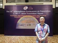 8月27日至29日,英语系副教授范定洪博士赴马来西亚槟城参加了国际译联第七届亚洲翻译家论坛(FIT 7th Asian Translators’ Forum),并在大会上宣读了论文。亚洲翻译家论坛每三年召开一次。此次论坛由马来西亚翻译协会、马来西亚国家翻译院和马来西亚语言文学所共同主办,马来西亚理科大学承办,主题是“译者/员培训:创新、评估与认证”(Translator and Interpreter Training: Innovation, Assessment and Recognition)。大会的主旨发言人包括Muhammad Haji Salleh、Christiane Nord、Jeremy Munday、Chan Sin-Wai、Franz Pochhacker、Jemina Napier等国际知名翻译研究专家。中国译协也组成13人的代表团参加了此次盛会。中国译协将于2016年与西安外国语大学联合主办第八届亚洲翻译家论坛。
