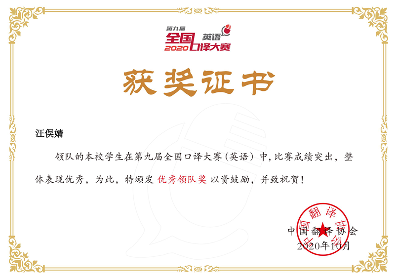 近日,随着第九届全国口译大赛(英语)大区赛的结束,中国翻译协会就跳蛋视频