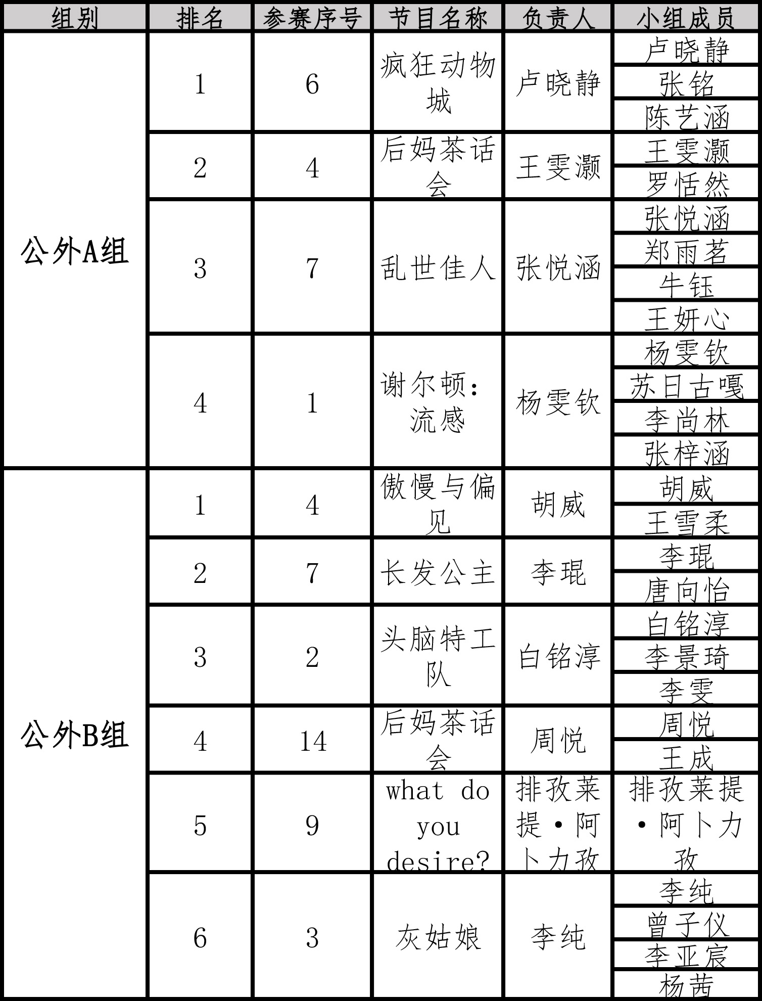 经过紧张激烈的比赛,各个组别晋级决赛的小组也相继决出。具体情况如下图: