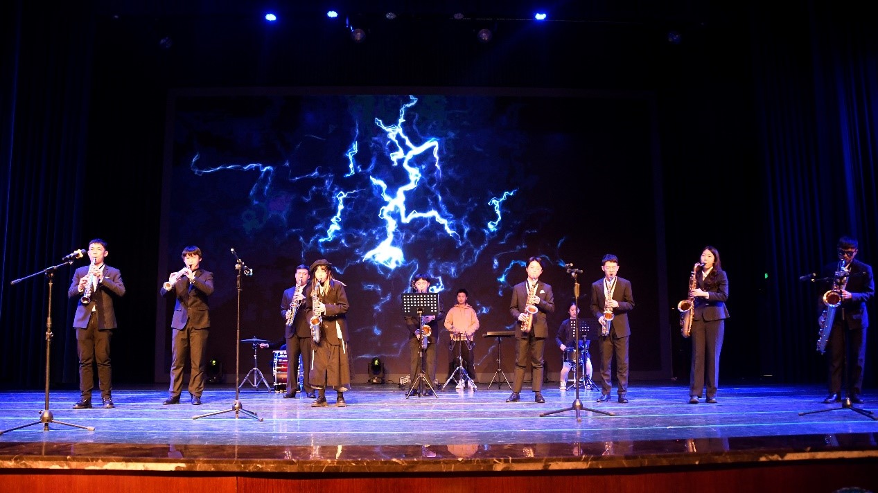 在开场幕中,Skipsoul热舞社以青春活力的舞蹈点燃了现场观众的热情。《纸扇书生》的舞者以古代儒雅书生的形象亮相,将中国古典文化的音韵之美展现地淋漓尽致。萨克斯乐队演奏的《加勒比海盗》,音乐由舒缓逐渐激昂,为大家带来一场沉浸式的视听盛宴。