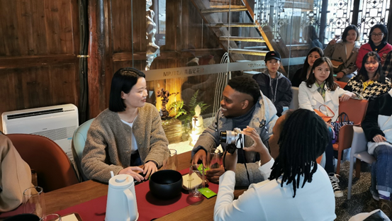 汉语国际教育专业实习基地——重庆市教育国际交流协会服务中心举办的“中外人文交流系列主题活动”,在中外人文交流(苗品记)行业基地开展了“国际茶文化交流课程”项目。我院汉语国际教育硕士专业15名研究生参与了此次活动。