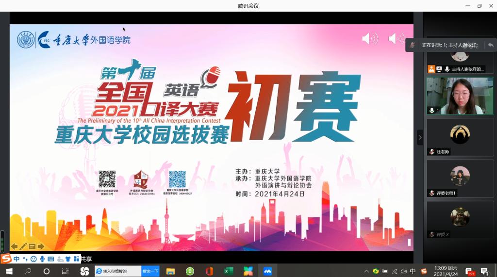本次校选赛初赛于2021年4月24日14:00在 “腾讯会议”线上平台进行,决赛于2021年4月29日14:00在跳蛋视频