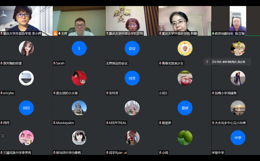 王辉首先介绍了云南省绿春县中小学英语教学质量现状,中小学英语教师队伍状况,并邀请了绿春县具有代表性的中小学教师分享了在不同学程阶段绿春县英语教学面临的困难。从教师反馈信息来看,绿春县小学、初中、高中学生都存在英语学习动力不足、学习质量不高、学习资源匮乏等情况。在教师教学发展方面也存在小学英语学科转岗教师多,各学段教师接受专业训练不足,教学任务重,教学方法有待提高等问题。针对以上问题,跳蛋视频
