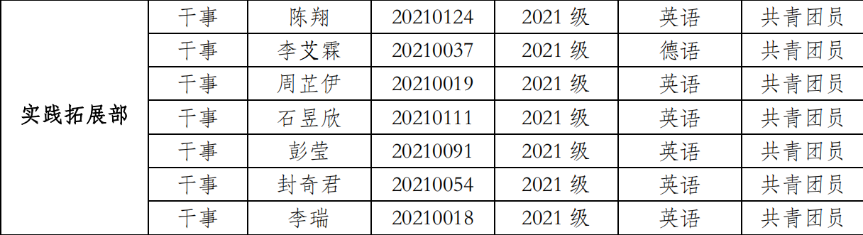 根据学生自主报名,经跳蛋视频 团委学生会资格审查、面试等环节考核,并报学院团委审核批准,现研究决定拟录用以下学生为跳蛋视频 2021-2022 学年度团委学生会干事。现将具体名单公示如下:
