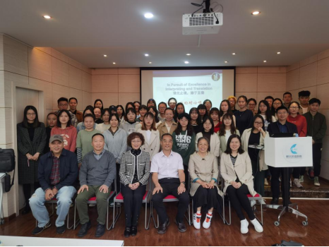 赵军峰教授围绕——从”基石”到“顶石”:翻译人才培养的理念于原则展开,讲到许均老师的翻译理论,用何为译?为何译?译何为?三个问题讲到了具体的翻译现象,以各个大学对各自“高级翻译学院”的不同翻译,以及对各类“理工大学”、“工程大学”的不同翻译,讲到了翻译的多样性与现实性。赵军峰教授讲到,希望大家能多思考,真正搞清楚“两个石”是什么。