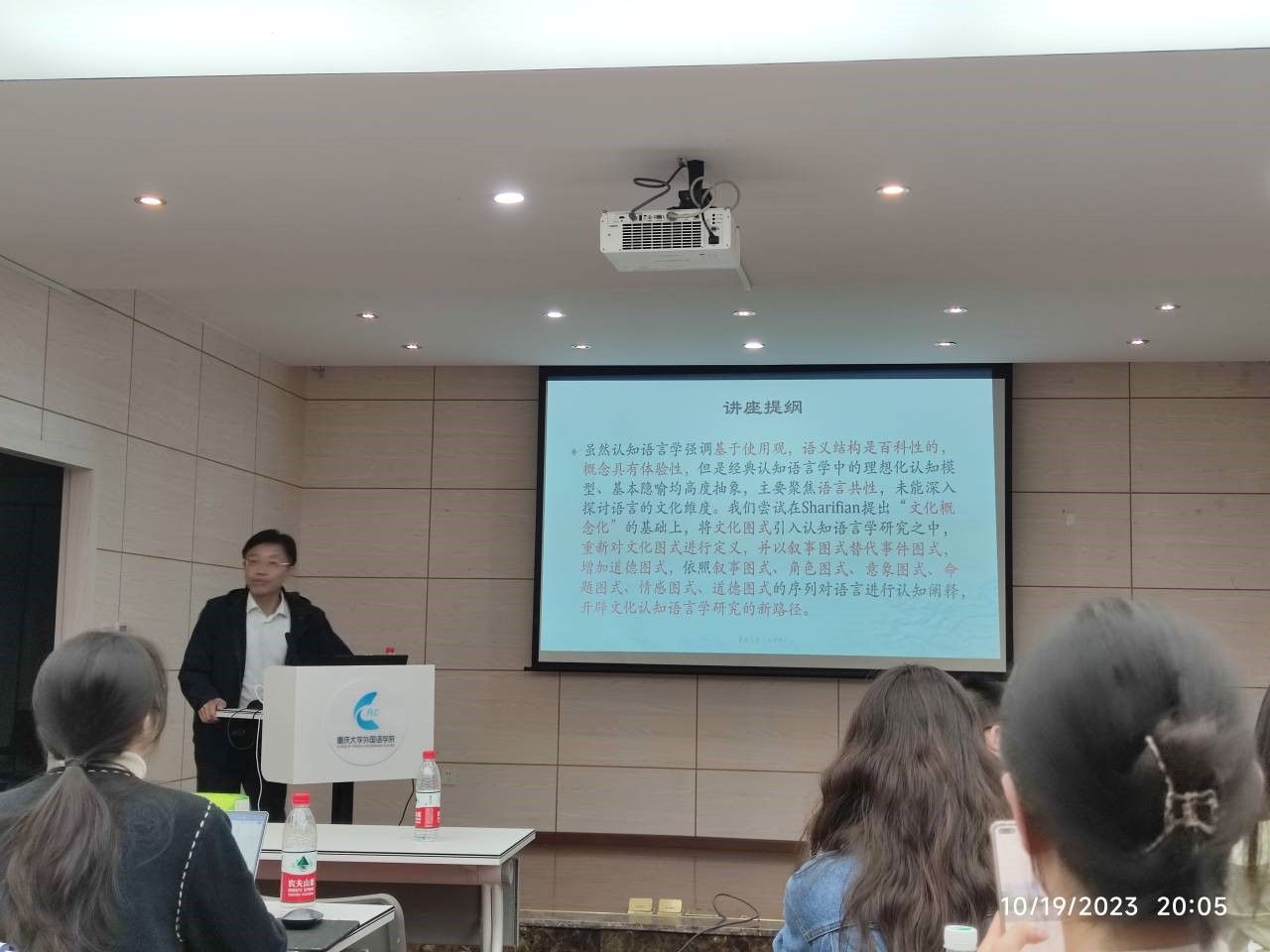 2023年10月19日,南京师范大学汪少华教授应邀在学院501会议室进行了题为“认知语言学研究的文化维度”的学术讲座。本次讲座由符存教授主持,讲座内容吸引了众多老师和学生到场聆听。