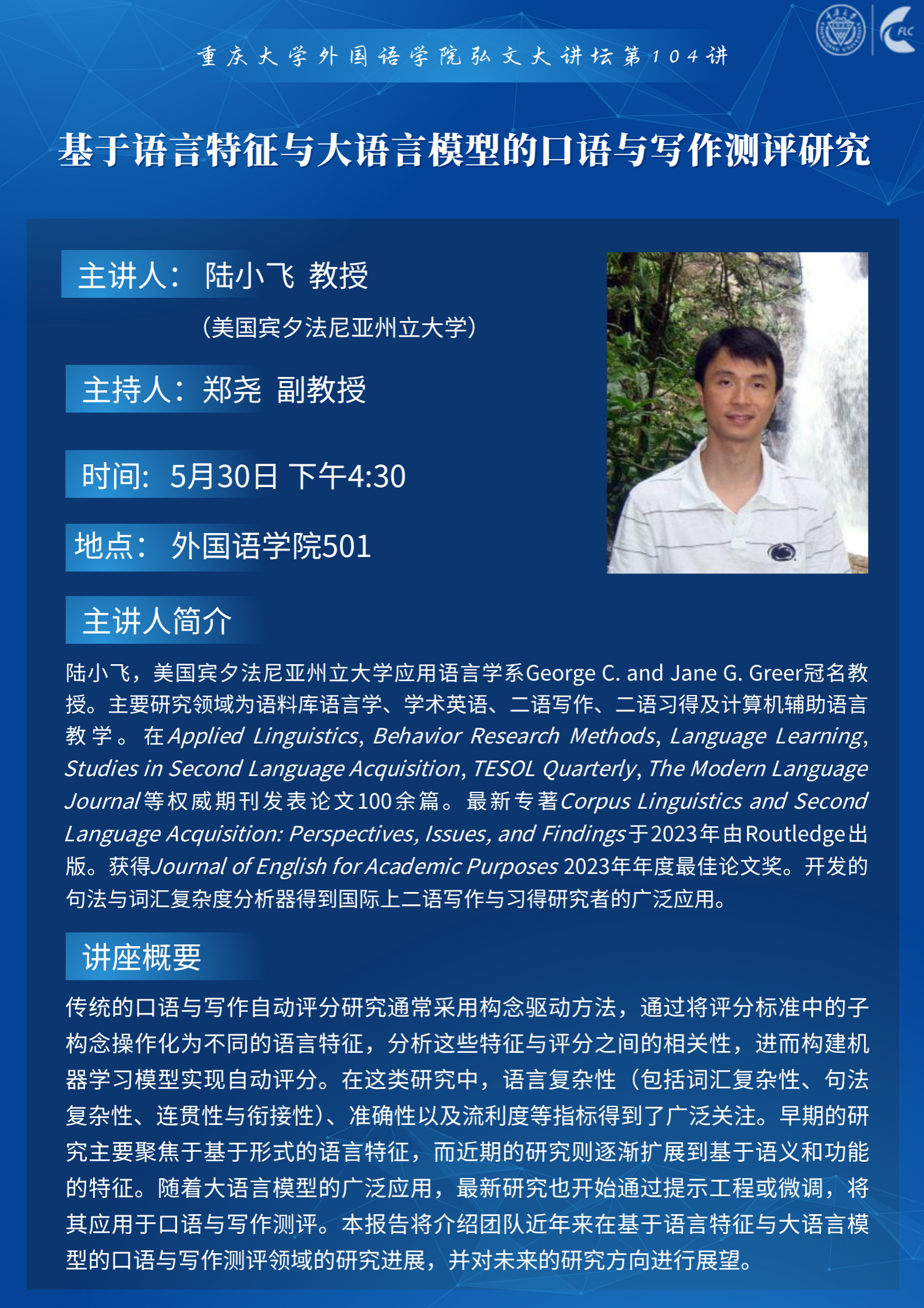 讲座|基于语言特征与大语言模型的口语与写作测评研究