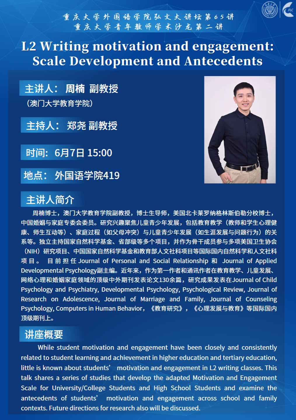 讲座|L2 Writing motivation and engagement: Scale Development and Antecedents
